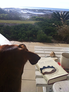 I sat out on the porch and read and sipped spirits. The owner of the property was an avid reader so it was filled with all kinds of books. I read two of his mysteries while I was there. Under the book are two layers of blankets…and Ruthie.