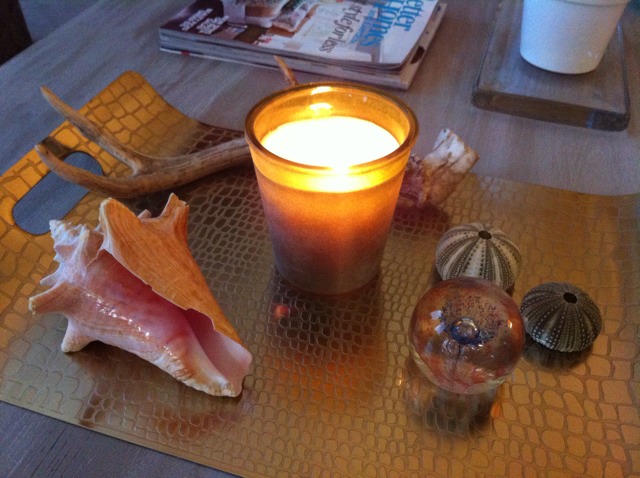 While Mr. Bee is busy ripping out shelving in Miss Bee’s closet to prepare for the Elfa invasion, I am snapping photos of the summer coffee table décor. Little things I’ve collected over the summer.