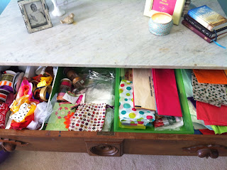 First, I vacuumed out the drawers, then lined them with scented paper from The Container Store.