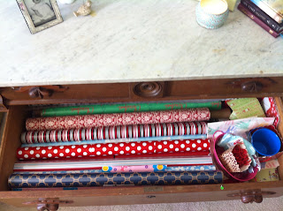 Gift wrapping was stored all over my house. Some in the hall closet that is just supposed to be for linens.